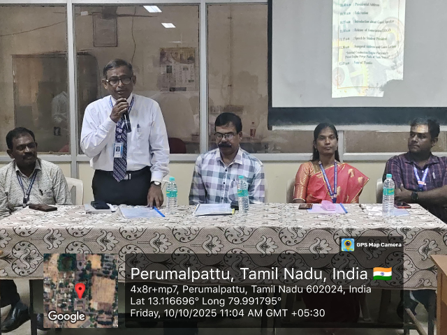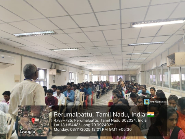 Mr. Singaravel shared valuable insights into the advanced engineering behind piston engine power packs used in battle tank systems, offering students a rare glimpse into defense-grade mechanical systems and real-world applications of internal combustion engine technology. The lecture covered technical design, performance parameters, material selection, and operational challenges associated with tank engines.The session was highly informative and engaging, sparking enthusiasm and curiosity among students, and encouraging them to explore career paths in core mechanical and defense engineering sectors.