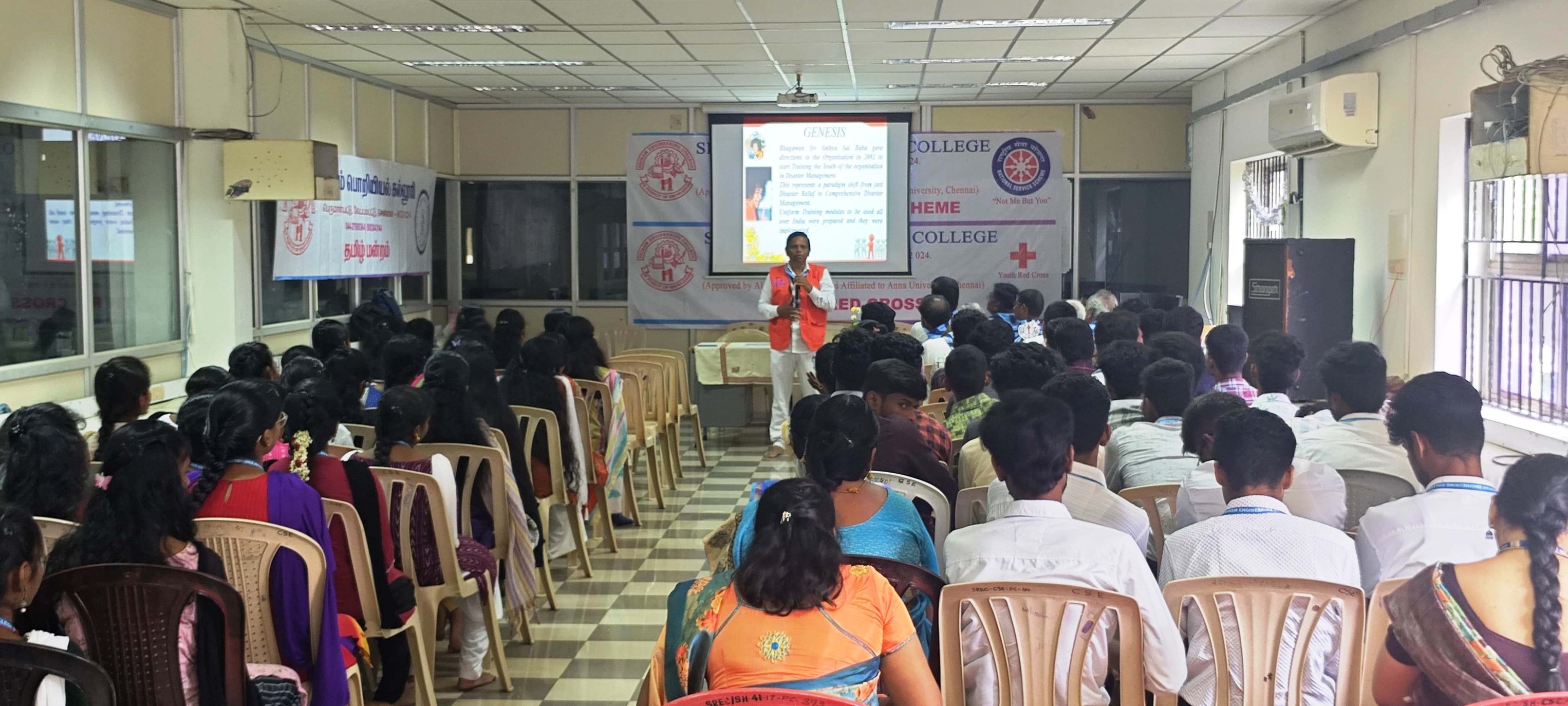 Disaster Management Training Program at Sriram Engineering College: Sriram Engineering College NSS Unit, YRC, Institution’s Innovation Council (IIC), and Sri Sathya Sai Seva Organization jointly organized a Disaster Management Training Program on 16th November 2024. Venue : CSE Seminar Hall Time : 10.00 A.M.