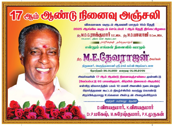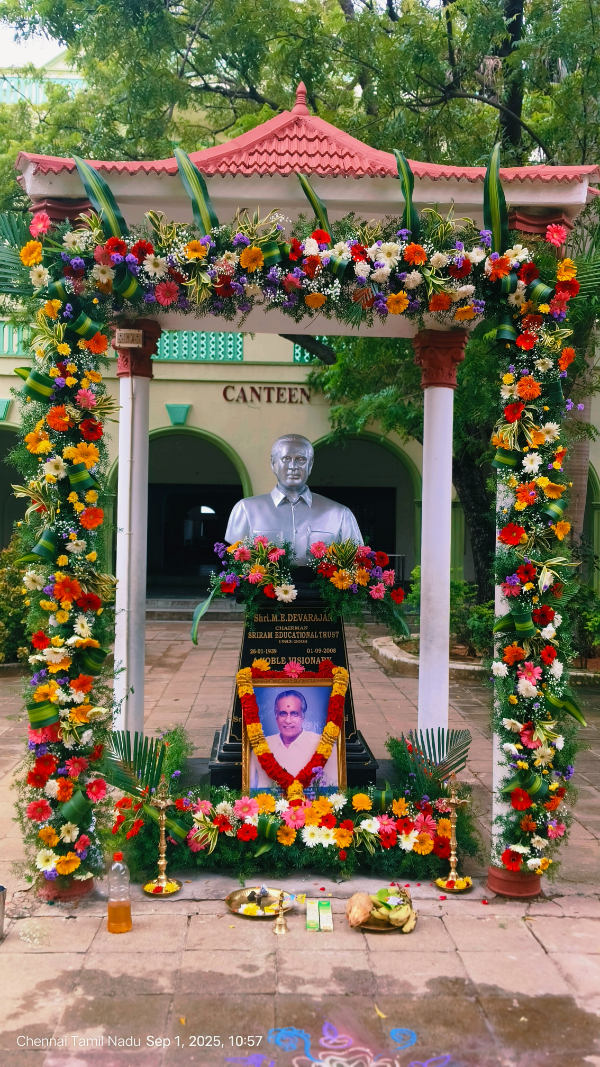 On the Seventeenth Anniversary of Late Shri M. E. Devarajan, Founder of the Sriram Group of Institutions, a commemorative ceremony was held at the Perumalpattu Campus on 1st September 2025.
