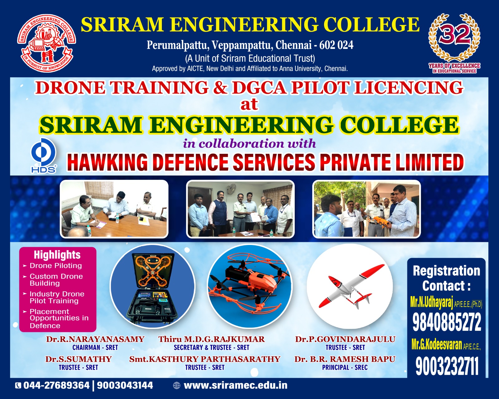 The Memorandum of Understanding has been signed by Sriram Engineering College with Hawking Defence Services Pvt. Ltd...