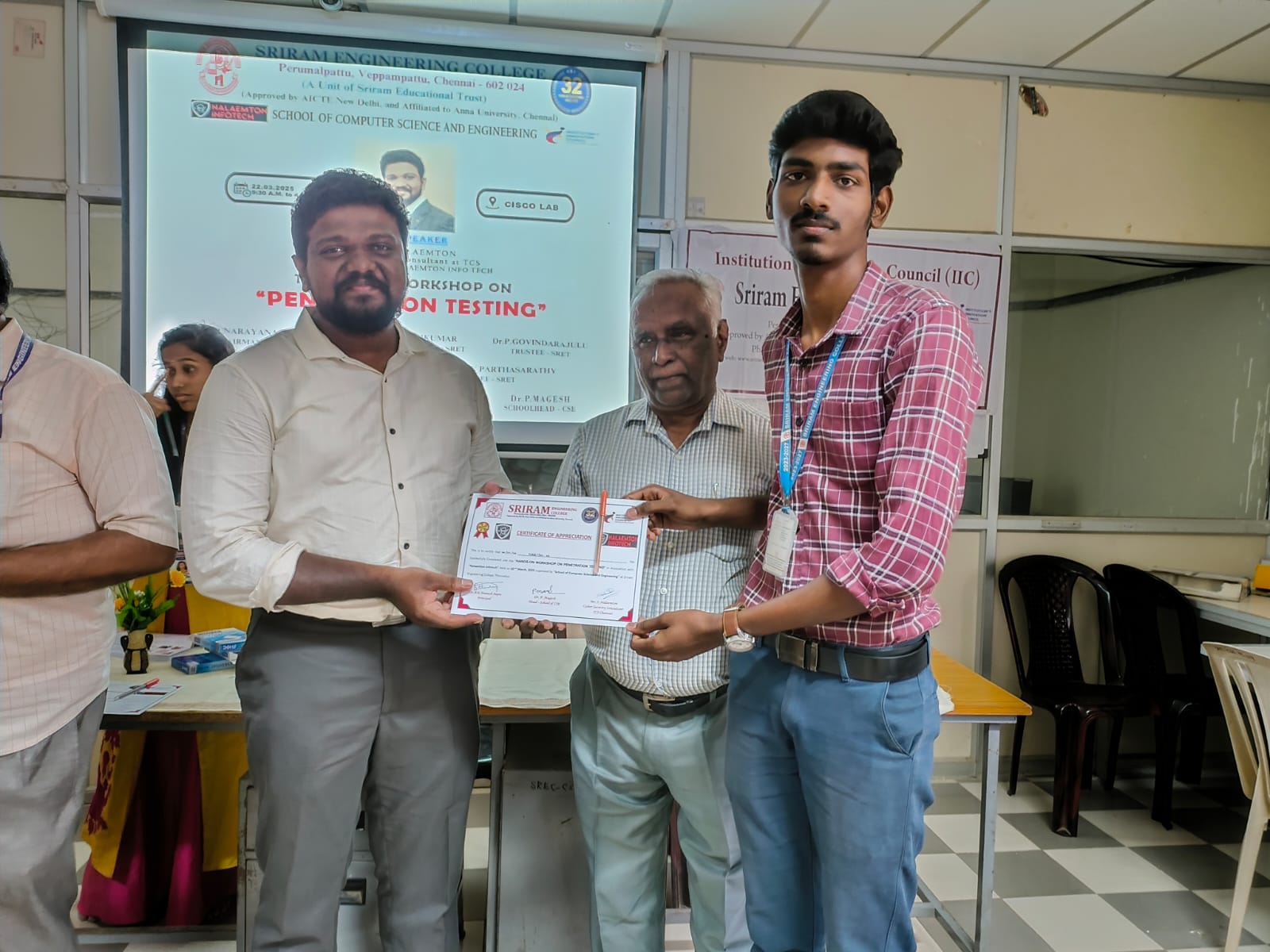 Sriram Engineering College organized a guest lecture on "An Introduction to Optical Fiber" at the CISCO Lab, CSE Block, for first-year students on 20th December 2024.