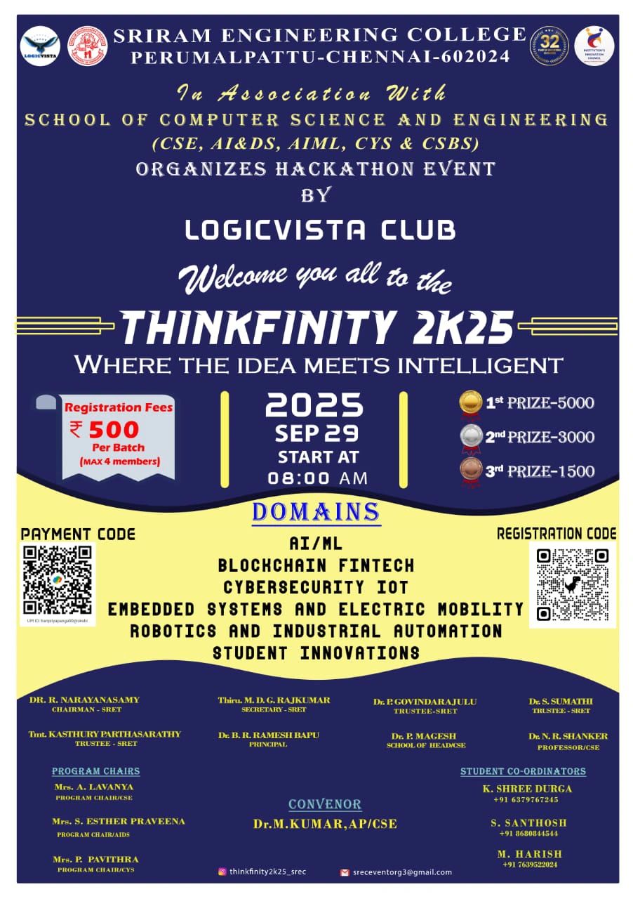 Sriram Engineering College, a constituent institution of Sriram Educational Trust established in 1993, is making great strides in achieving excellence in technical education since inception. In a couple of decades of its remarkable service in engineering education, the college has produced a number of gold medalists and university ranks.