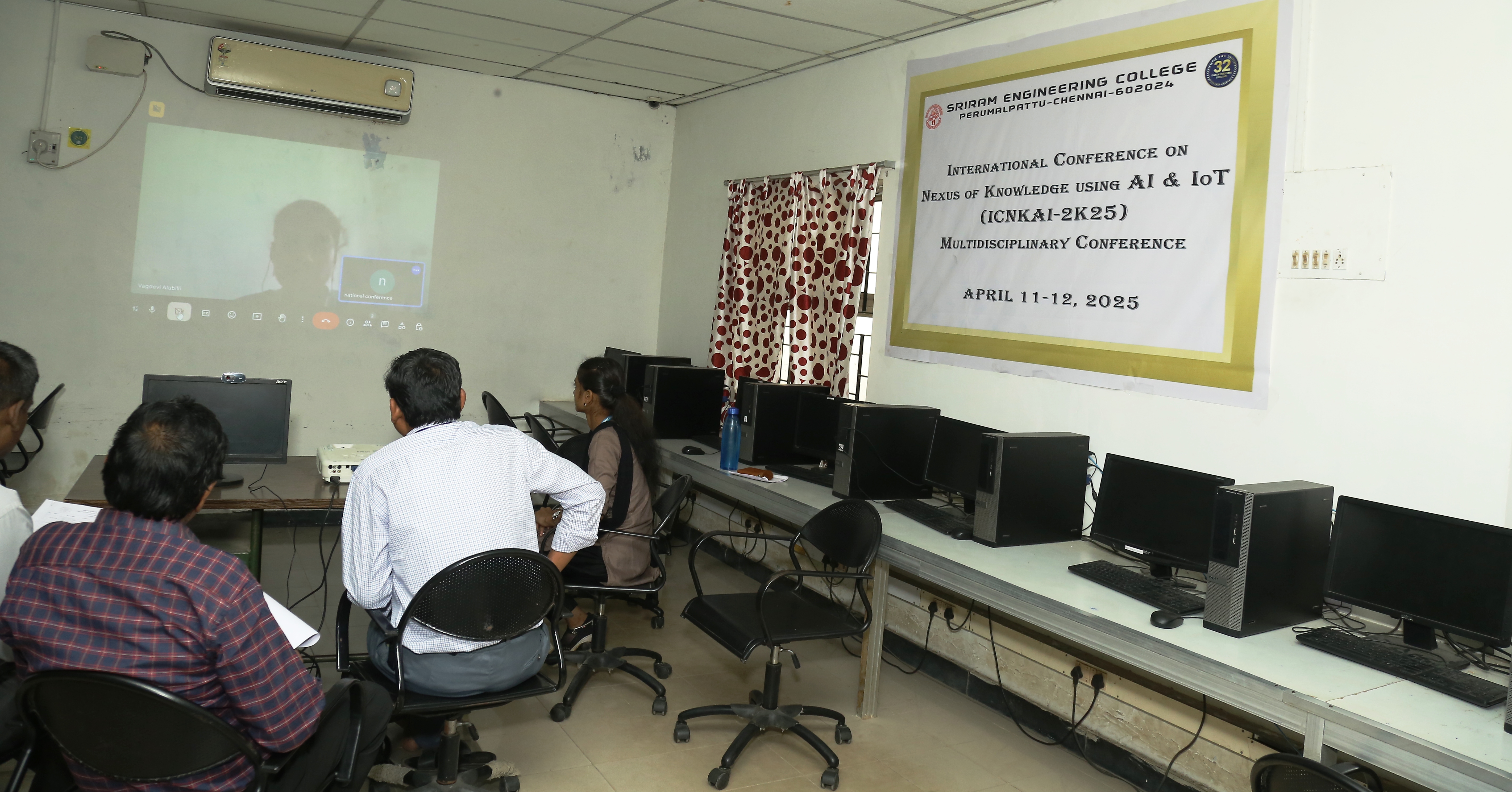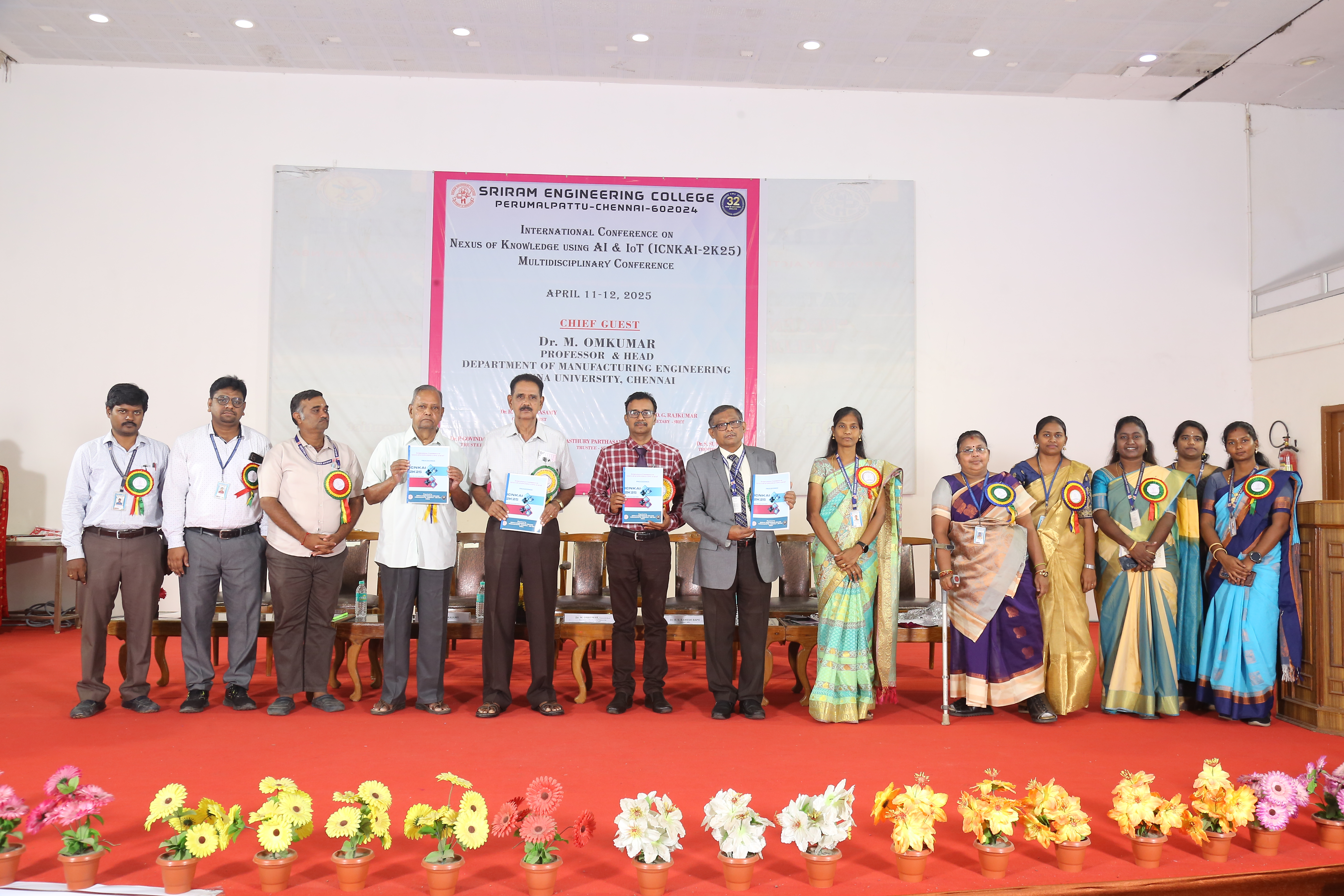 Sriram Engineering College successfully organized an International Conference on the Nexus of Knowledge Using AI & IoT (ICNKAI-2K25) on April 11, 2025. Nearly 188 students participated enthusiastically joining both online and offline sessions from various colleges across different institutions. The event was graced by Dr. M. Omkumar, Professor & Head, Department of Manufacturing Engineering, Anna University, Chennai, who was invited as a Chief Guest. His insights on the integration of Artificial Intelligence and the Internet of Things in modern engineering practices set a thought-provoking tone for the sessions that followed.