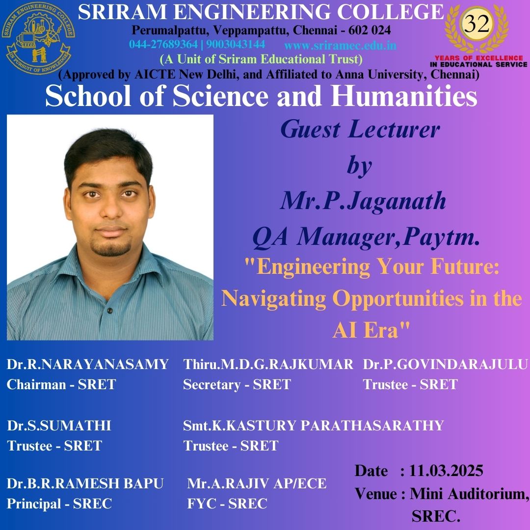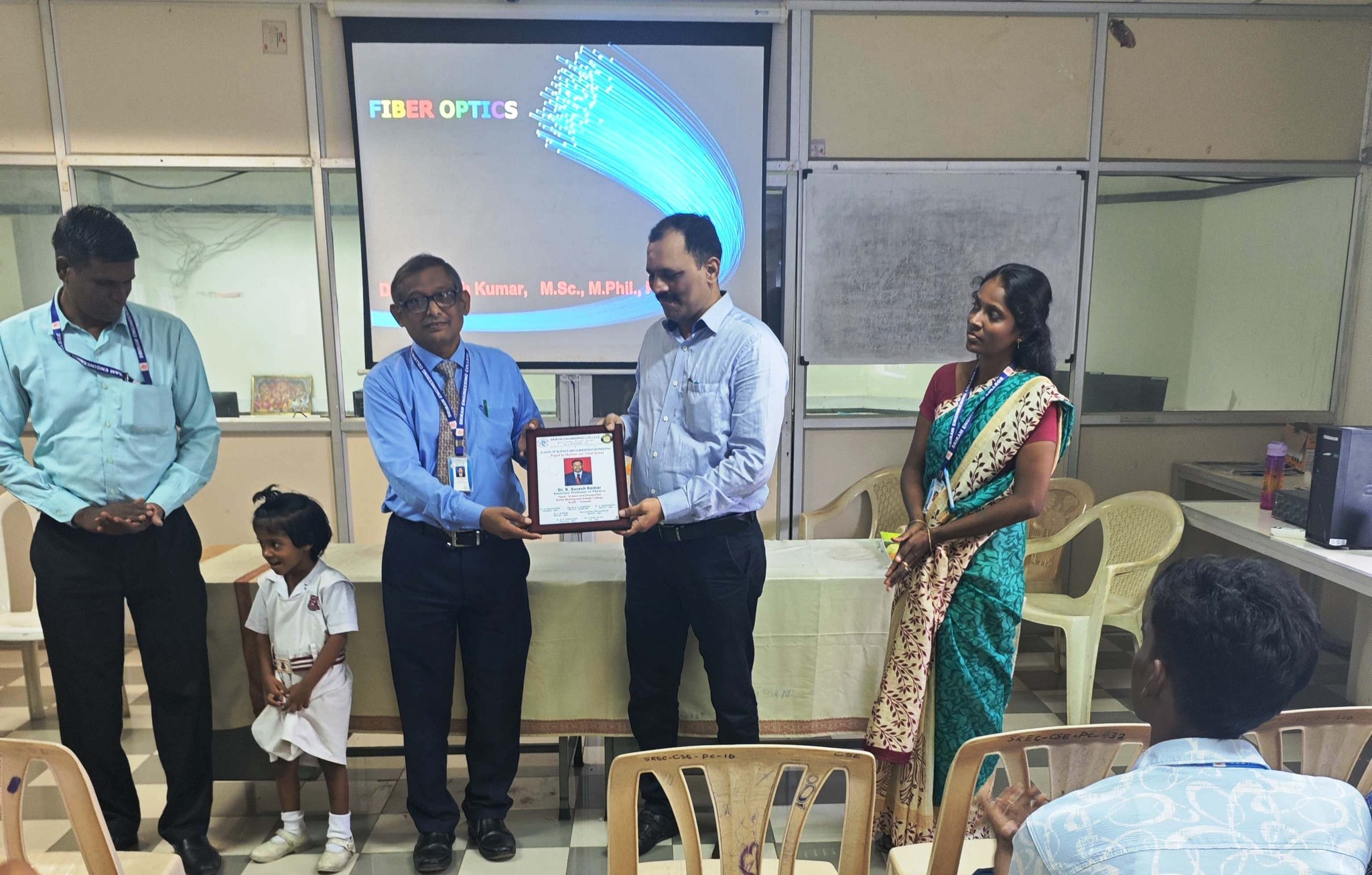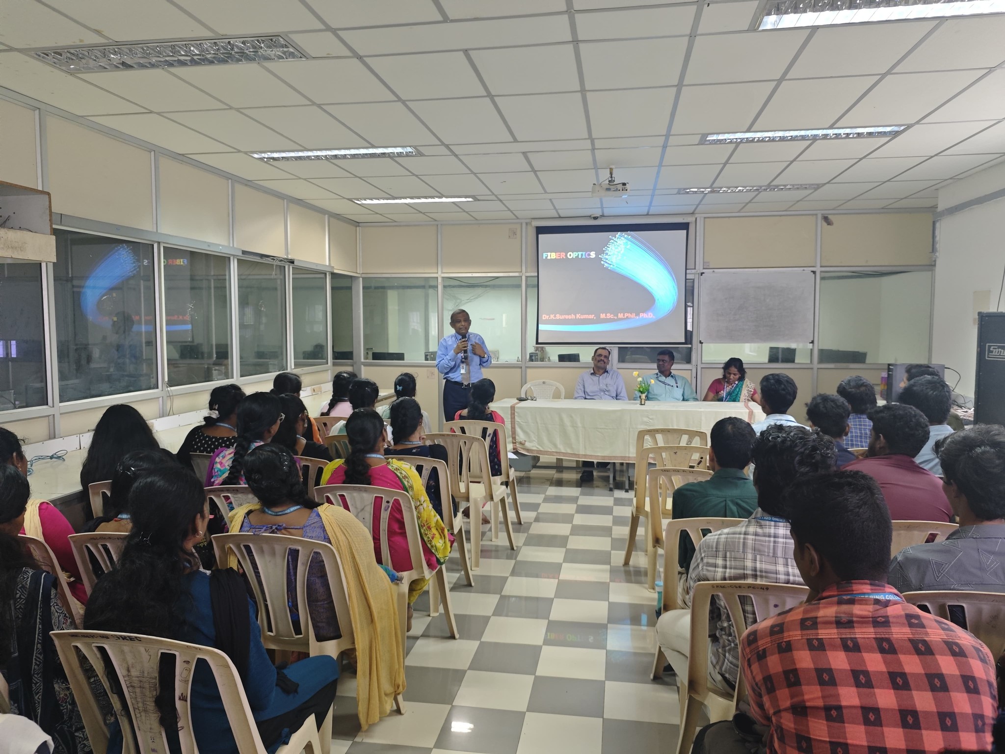 Sriram Engineering College organized a guest lecture on "An Introduction to Optical Fiber" at the CISCO Lab, CSE Block, for first-year students on 20th December 2024.