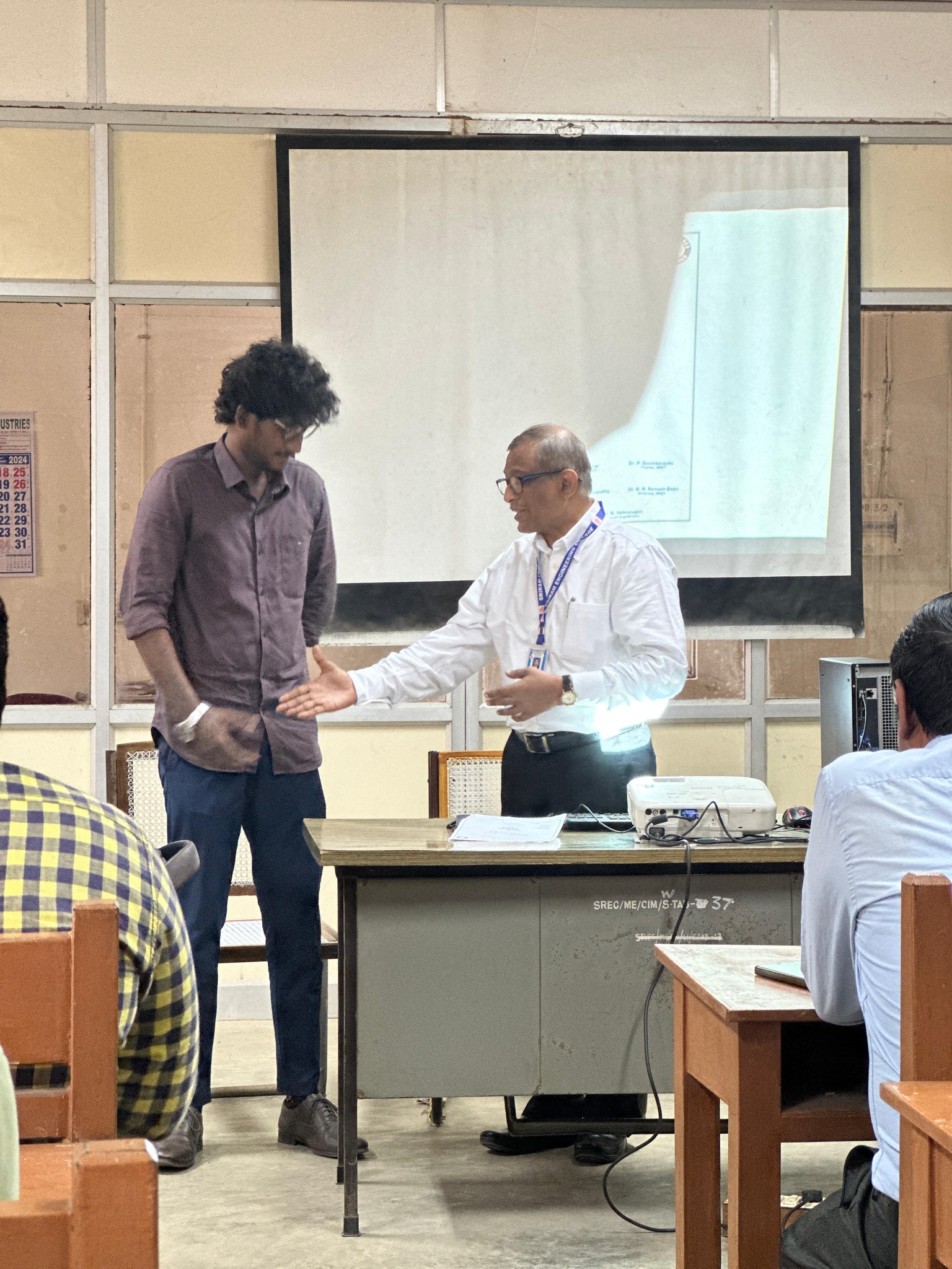 Sriram Engineering College School of Mechanical Engineering Organised a seminar on ADVANCED CAD/CAM/CAE on friday 25-10-2024 at 11.00 a.m in Metrology lab. Guest speaker : Mr. M.V.Yashith Founder & CEO DELAUTO Solutions, Chennai